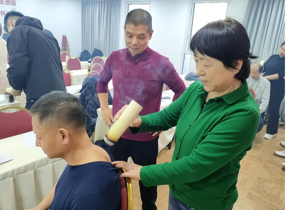 光彩养老事业促进中心王宏君主任为光彩健康服务驿站进行养生知识、推拿手法的赋能培训以及讲解驿站的整体运营模式;廉欣秘书长为驿站进行新媒体运营培训,此外光彩养老事业促进中心的中医专家团队成员陈天同老师为驿站进行灸法知识的培训,天同老师是天津环湖医院针灸科主任戴嘉寅弟子(传承体系石学敏、施今墨、蒲辅周等中国名老中医),对灸法颇为精通。