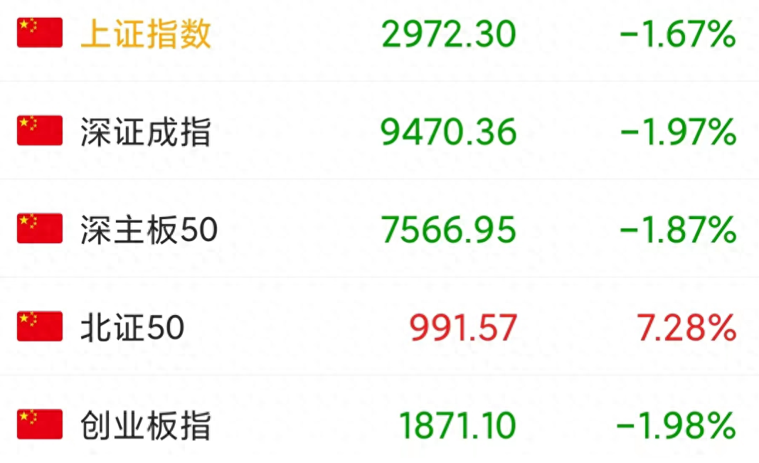 股市环境的好坏决定行情的好坏,比如今天各大板块都在跌,指数除了北证50都在跌,内部环境堪忧;叠加今天外部环境的负面影响,港股和日经股市都在下跌,跌幅均超1%,给予A股跌破3000点承受巨大的压力。