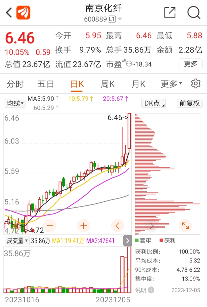 总得来说南京化纤这个涨停板是相当不错的,完全属于模式内的首板票,隔日溢价会很不错,5个点以上没问题,如果高开幅度不错的话连板的概率也很大,主要是基于以下考虑: