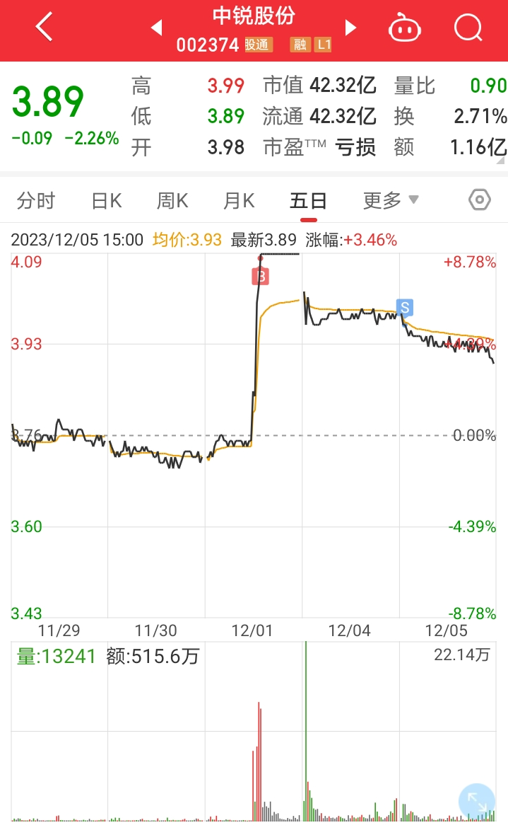 周五基本板上4.08拿的货,今天早盘跟美邦服饰类似,开盘即向下,3.96的位置迅速止损,浮亏3.03%。模式内的亏损,但是确实可以避免,下次注意。