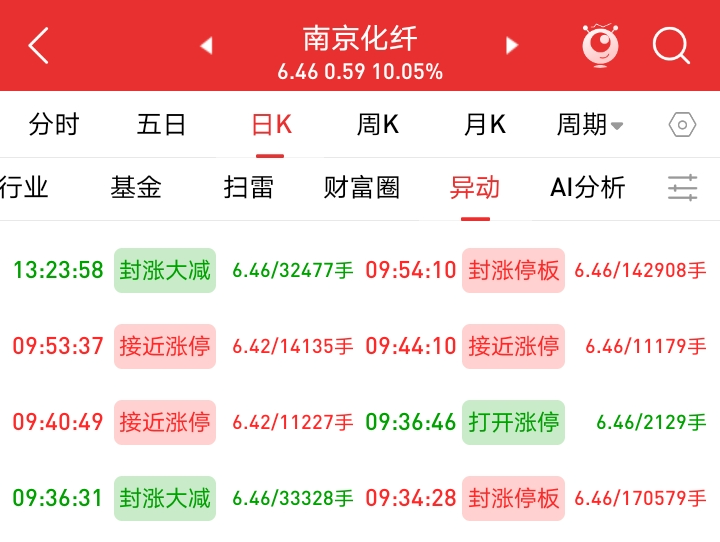 $南京化纤(SH600889)$ (炸板股的换手反包板)
