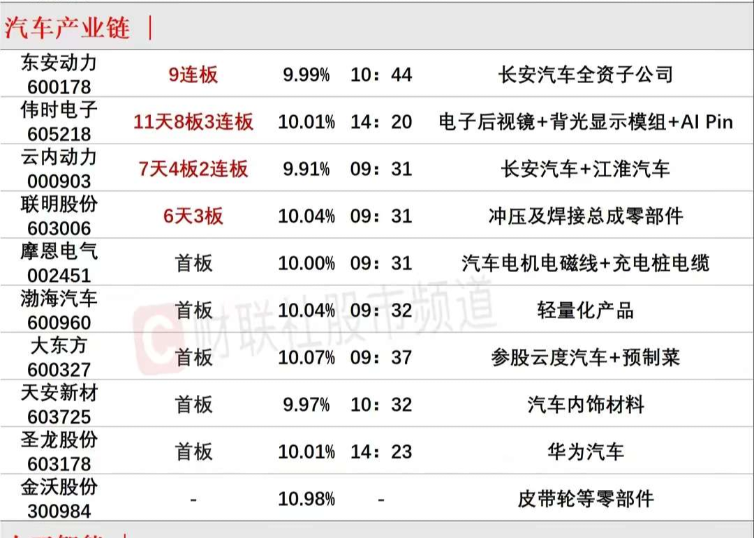 3、大东方的概念是真的好,参股云度汽车加预制菜概念,都是近期的热点板块,财联社盘后给的涨停板块是汽车产业链,今天这个板块再次出现6个首板,前排的摩恩电气、联明股份以及大东方大概率在隔日会有晋级的。
