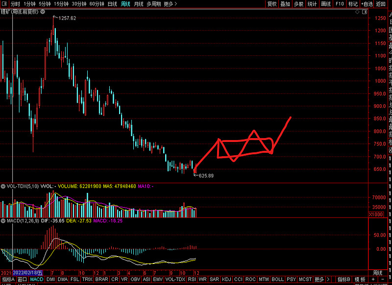 我们要明白锂矿的本质,其实还是新能源车,基本上两个是一体的,而锂矿相关的最牛逼的股票是宁德时代,一个是看锂矿有没有见底反弹,还有个就是看宁德时代有没有见底,宁德时代之前分析过,有需要的可以查看历史文章。