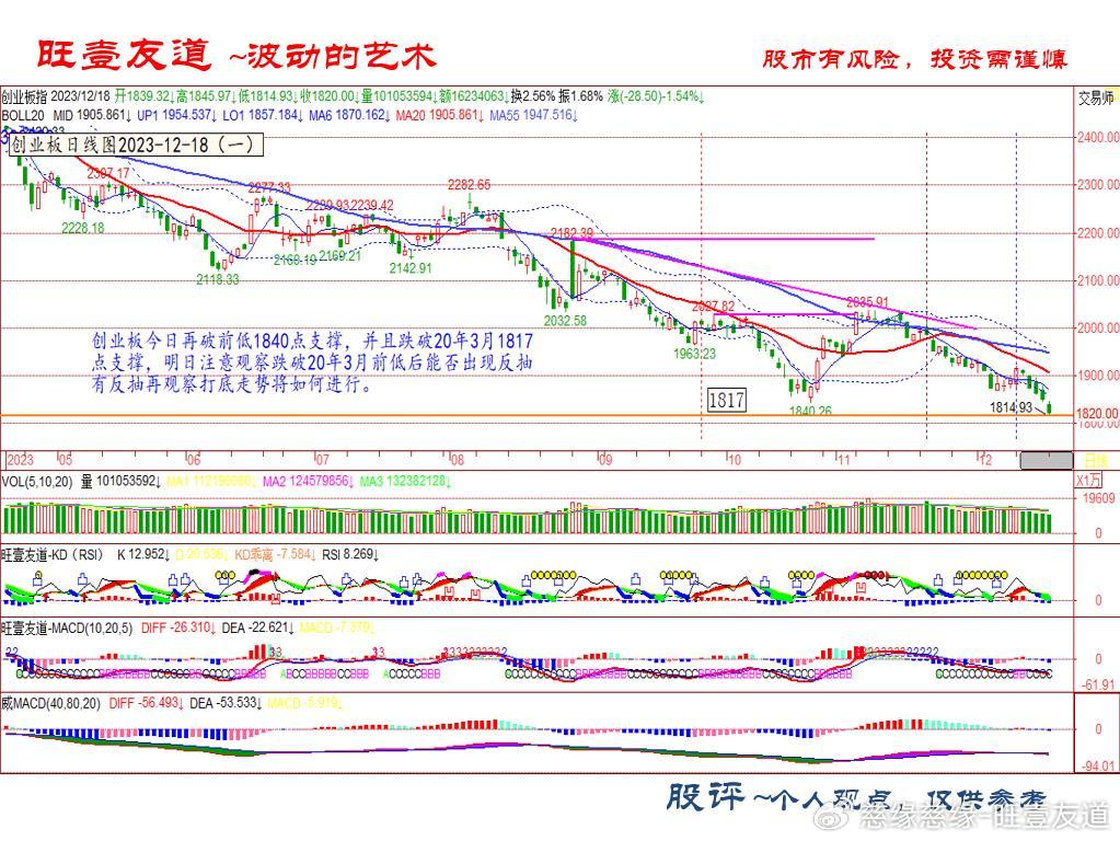 创业板今日再破前低1840点支撑,并且跌破20年3月1817 点支撑,明日注意观察跌破20年3月前低后能否出现反抽 有反抽再观察打底走势将如何进行。