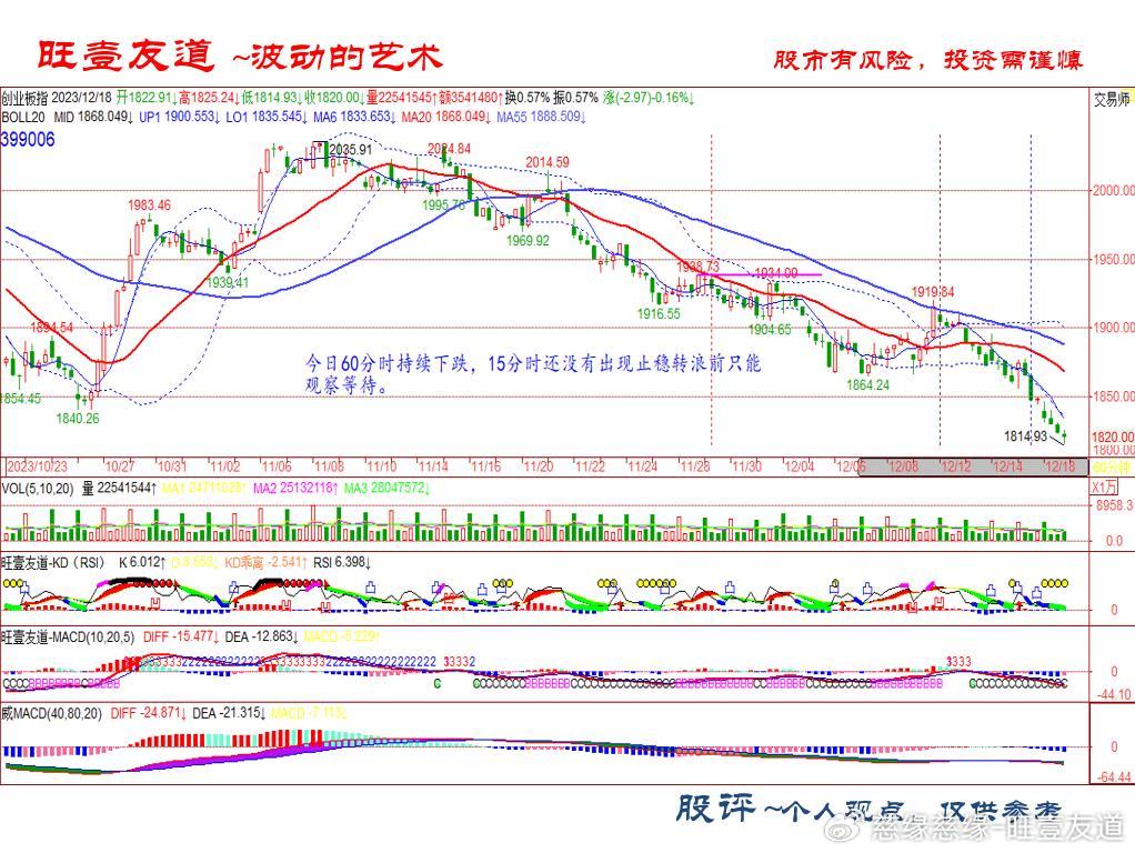 今日60分时持续下跌,15分时还没有出现止稳转浪前只能 观察等待。