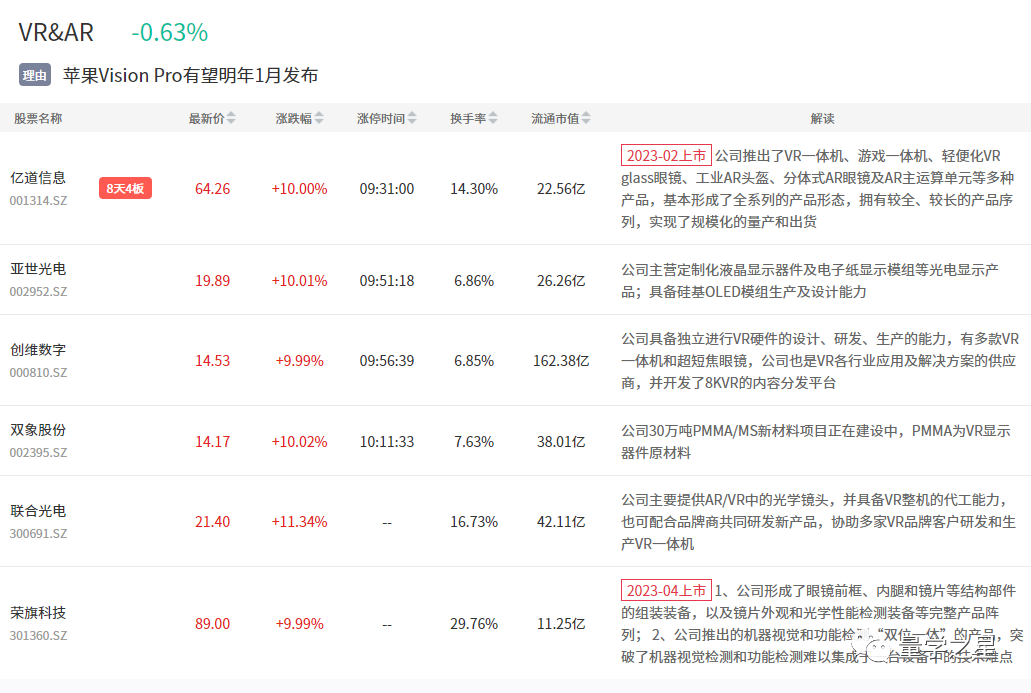 据悉,该股近期频繁受到机构调研,目前亿境虚拟自研自定义的轻量级MR产品的销售推广正在有序推进中。根据草根调研,亿道信息做白牌MR,目前华强北已经开始铺渠道。市场资金认为,白牌MR对标当年苹果无线耳机漫步者。