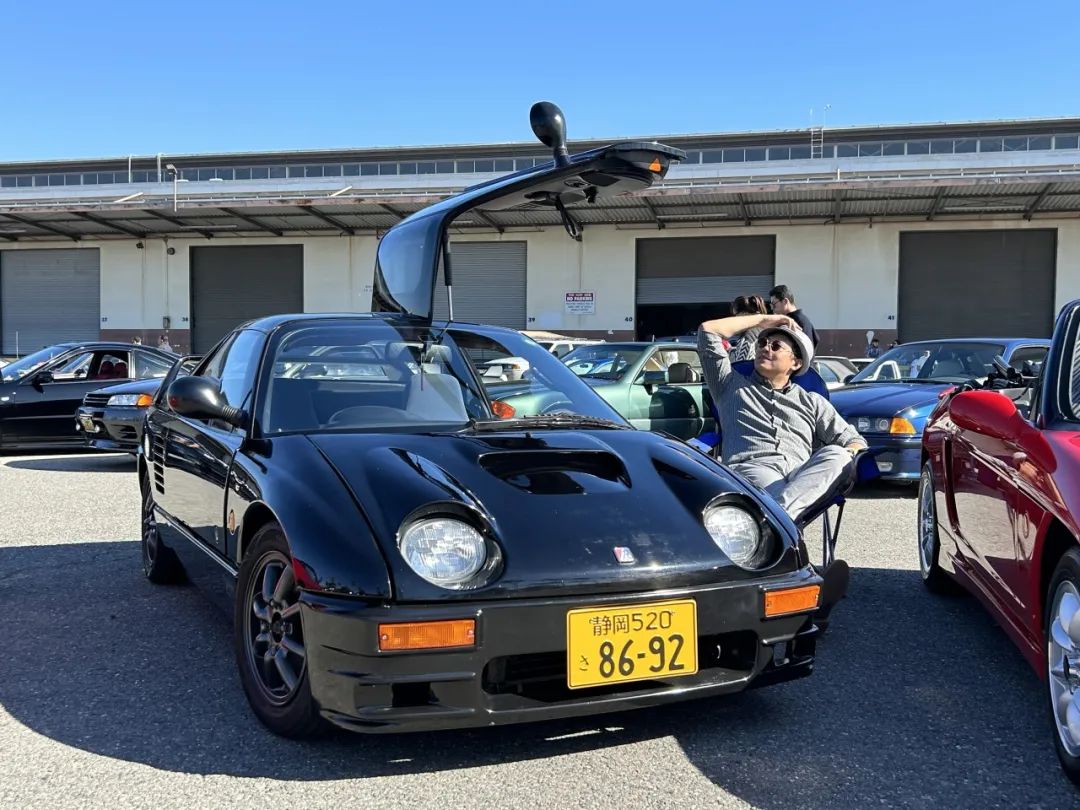 我看到,有的车主在逛展聊天,有的摆了躺椅,靠在旁边喝着无酒精饮料。人到中年的一群哥们,坐在水泥墩上闲聊;幼儿被邀请进入小车合影,一对老夫妻在车旁晒太阳。