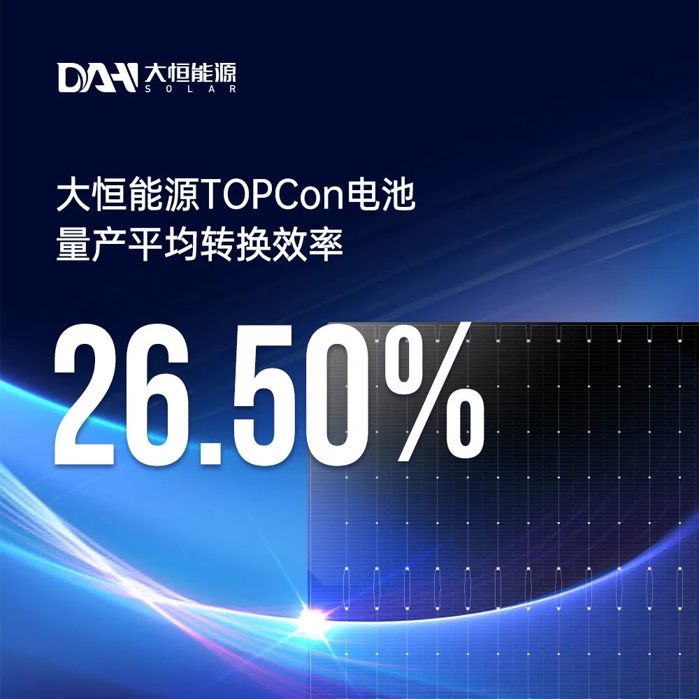 再创新高!大恒能源TOPCon电池量产转换效率达26.5%