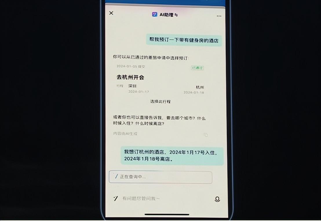甚至可以通过智能差旅等项目,直接调用其他应用的部分功能(如演示中的定酒店)