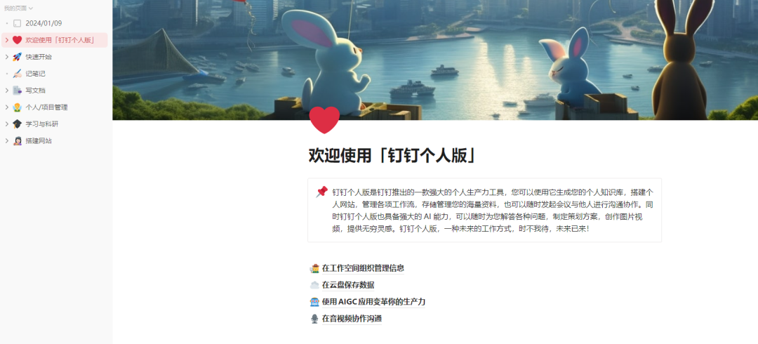 具体功能也完全脱离原版的公司协作模式,将AI助手作为几乎是本体的基础功能:AI加持下的文案或图片创作,日程安排甚至搭建个人网页,都被塞到了新增的个人版之中。