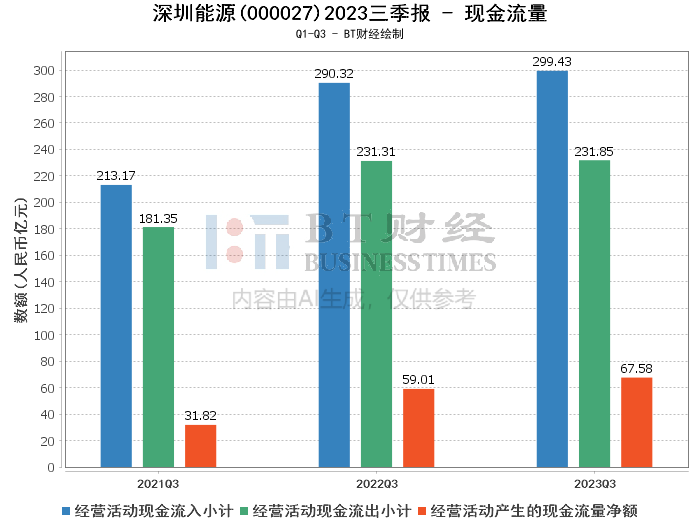 综上所述,深圳能源在2023年三季度表现出了良好的经营状况,尤其是清洁能源板块的快速发展为公司的收入和利润增长提供了强有力的支撑。公司的资产规模和净资产均实现了稳健增长,负债水平有所上升但仍在可控范围内,现金流量净额的增加也显示出公司良好的现金流管理能力。