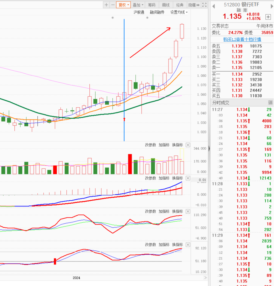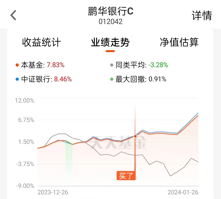 3、股基 $鹏华中证银行指数(LOF)C$ 因为上周五尾盘又走好,所以撤单了没有卖,今天继续持有观望。