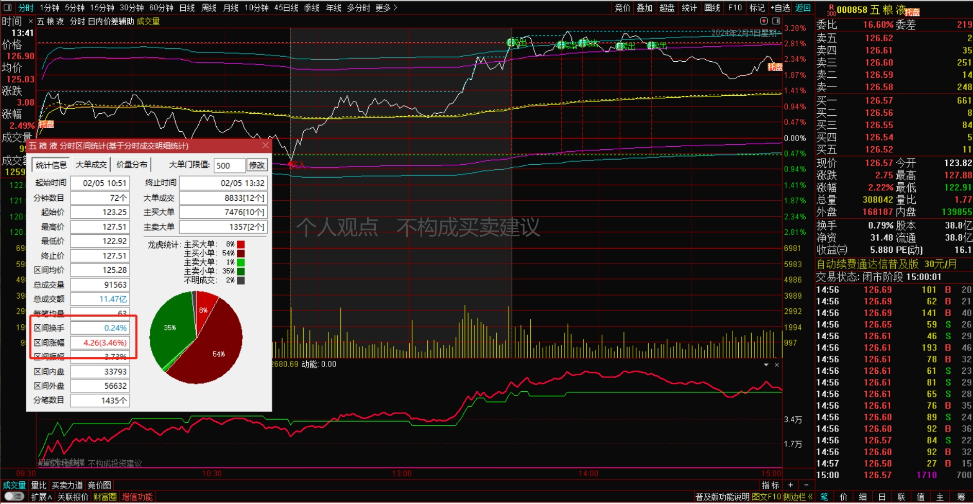 $五粮液(SZ000858)$收盘价为126.57。今日以123.82开盘,最高价达到127.88,最低价为122.91。
