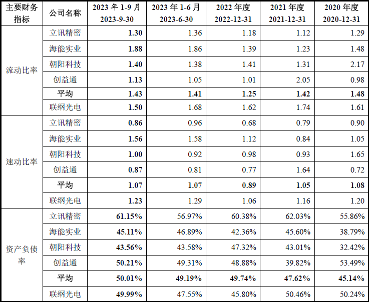 发行人披露的偿债指标与可比公司比较情况,如下表所示: