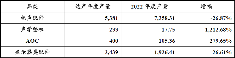 至于上表中的电声配件项目、显示器类配件项目,对应的是耳机线产品和数据线业务,耳机线产品在蓝牙耳机大行其道的今天和未来,大肆扩产耳机线业务或许也非明智之举,甚至只存在压塑胶壳的一道工序之下,如上表中的减产是非常符合实际的,不过话又说回来,耳机线业务毛利率最高,且为收入占比第二大业务,发行人在上表中为何还要削减产能,此也对应上文中的耳机线业务真实性问题;至于显示器数据线,发行人与乐视的前车之鉴或许可以参考一二。