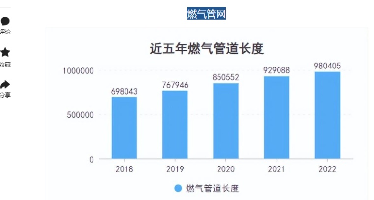3、燃气管道:2018年,国内管网长度为70万公里;2022年,国内管网长度98万公里。5年共增长28万公里,增幅高达29%