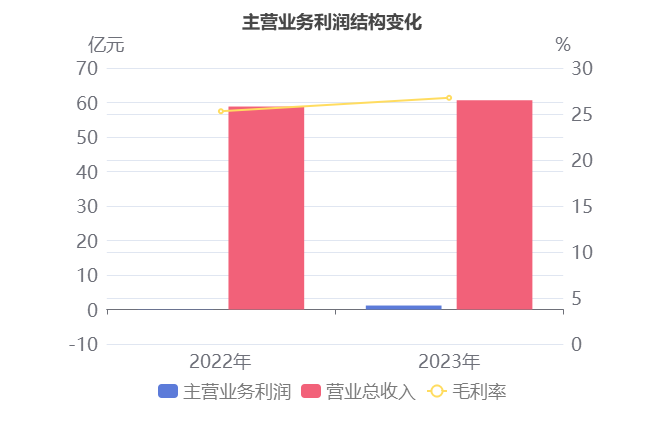 2023年,公司实现营业总收入60.65亿元,同比小幅增长3.10%。扣非净利润1.18亿元,同比大幅增长4.91倍。净利润1.09亿元,同比大幅增长59.84%。