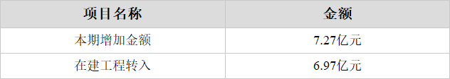 本期在建工程转入6.97亿元