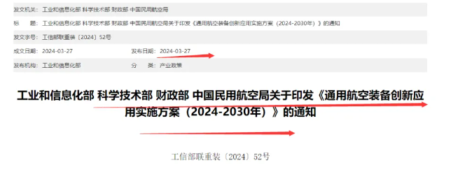 1)3月27日,工业和信息化部联合科学技术部、财政部、中国民用航空局印发《通用航空装备创新应用实施方案(2024-2030年)》。