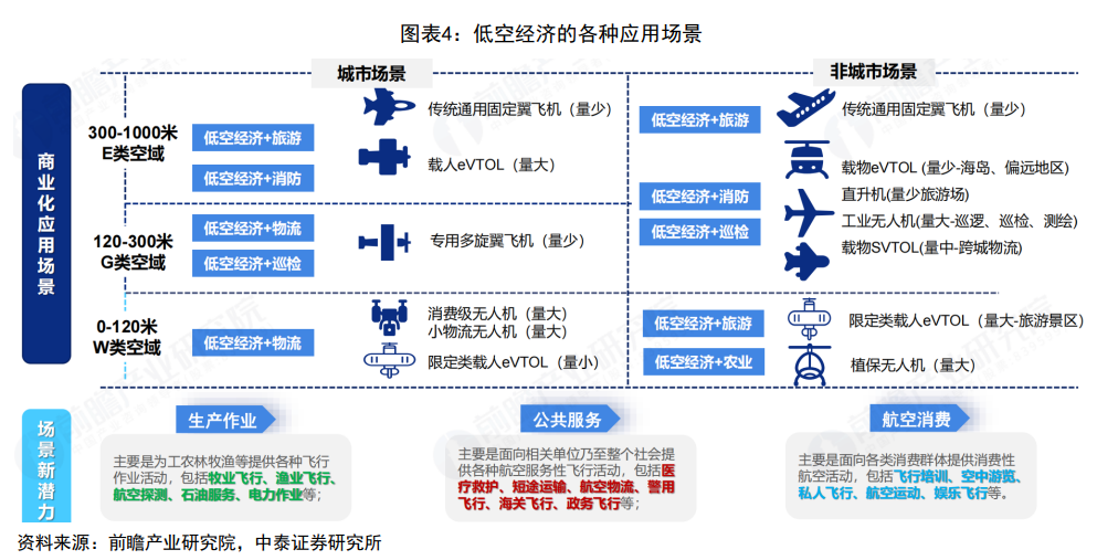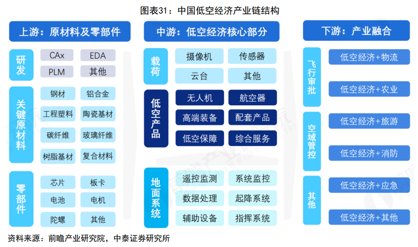 3)下游:先要进行飞行审批、空域备案等,应用是低空经济与各种产业的融合(来源:中泰证券)