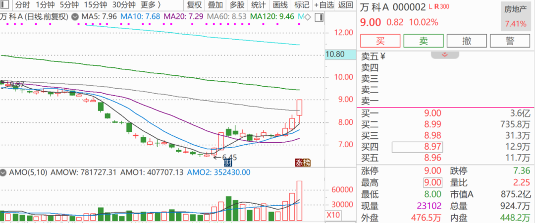 涨停的房地产股票中,还包括很多大V割肉的万科A,从最低点计算,万科A已经暴涨近40%,那些大V心情会如何?