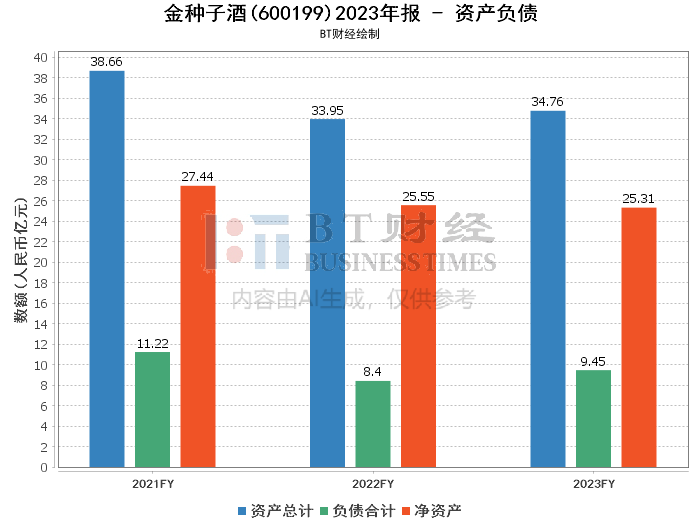 在资产负债方面,金种子酒的总资产从2022年的33.95亿元增长到2023年的34.76亿元,增长了2.41%。负债合计从8.4亿元增加到9.45亿元,资产负债率由24.74%上升到27.19%,显示出公司财务结构的稳健,但也反映出负债水平的上升。