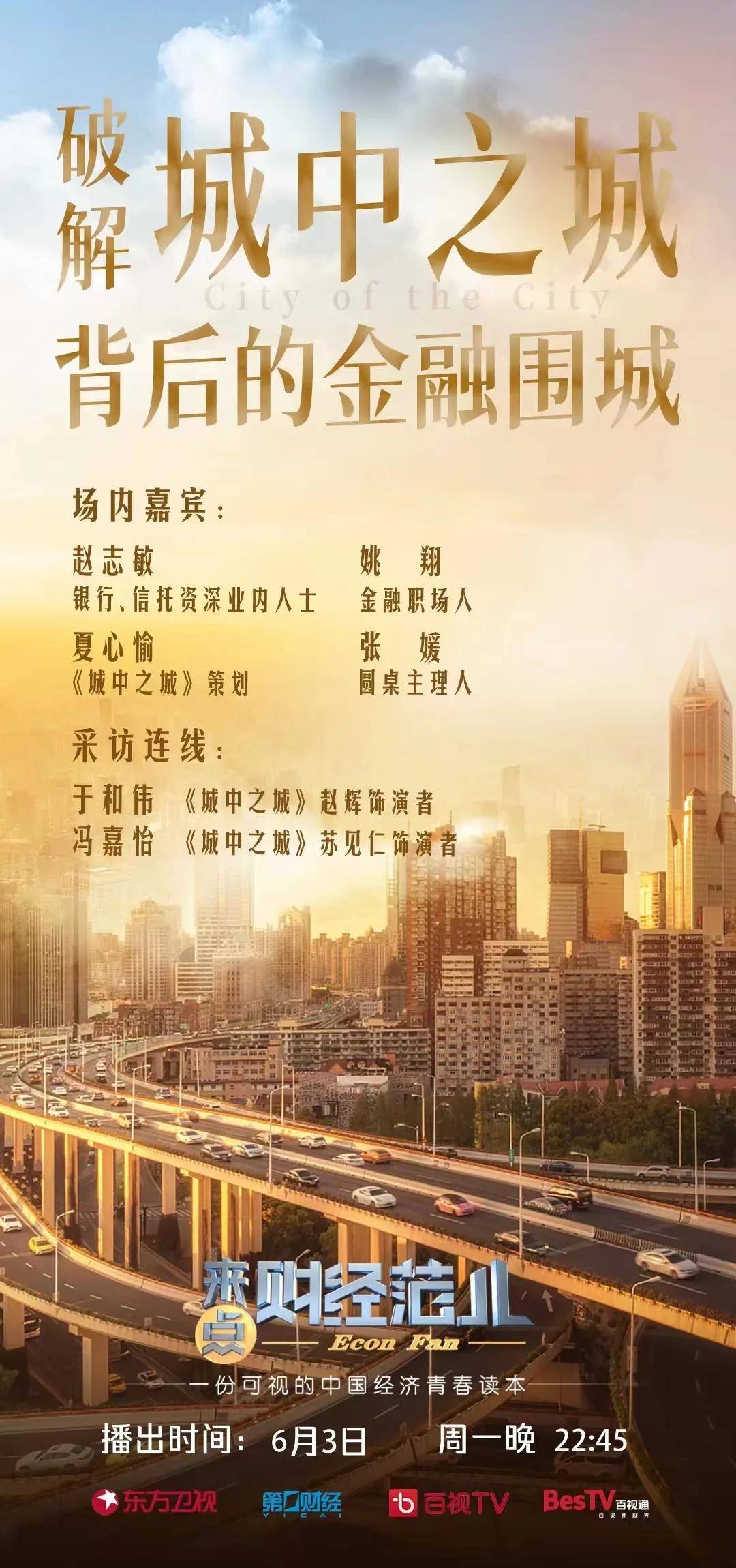 6月3日晚间22:45,如果亲们有空的话,欢迎收看东方卫视、第一财经《来点财经范儿》节目,我们一起破解《城中之城》背后的金融围城。
