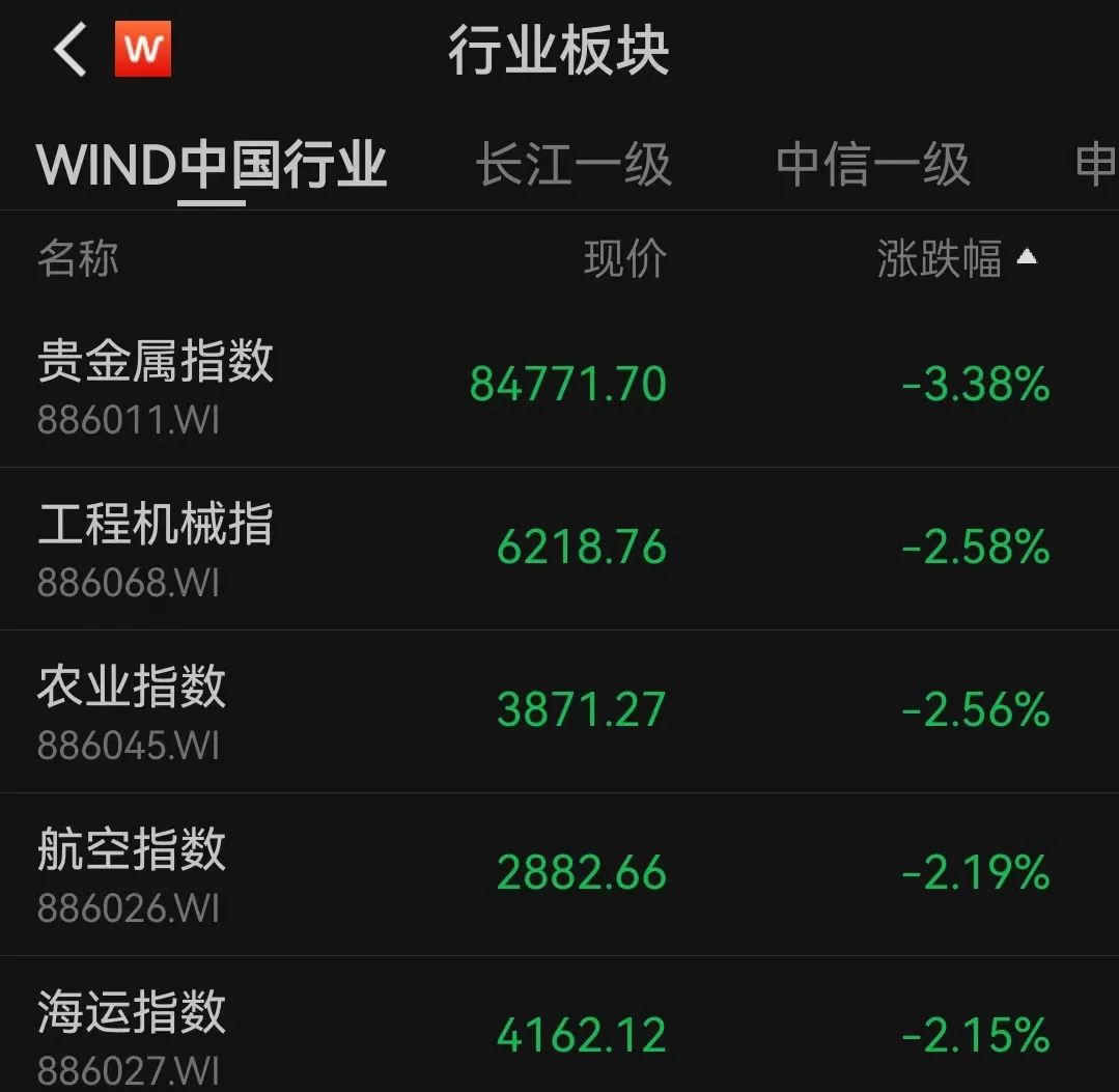 下跌方面,贵金属板块走低,银泰黄金跌超5%,湖南黄金跌超4%;养殖业板块普跌,牧原股份、新五丰跌超4%;汽车服务、煤炭、油气等板块跌幅居前。
