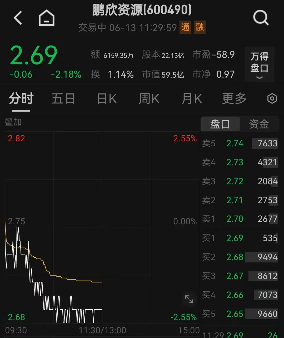 鹏欣资源则暂无异动,低开低走,截至午间收盘,下跌超2%。