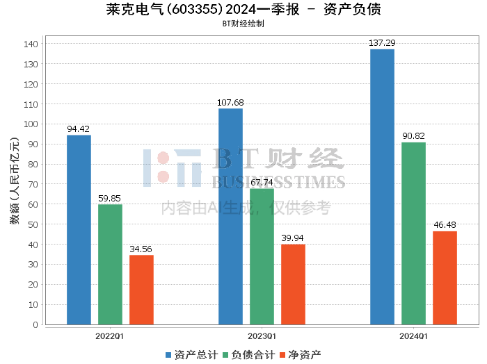 莱克电气在2024年一季度的资产总计为137.29亿元,较期初的125.62亿元增长了9.29%。负债合计为90.82亿元,较期初的81.74亿元增长了11.11%。资产负债率从期初的65.07%上升至66.15%,显示出公司在扩展业务的同时也承担了更多的负债。商誉保持不变,期末余额为6.46亿元。尽管负债有所增加,但公司的净资产收益率(ROE)从期初的4.76%上升至6.03%,表明公司在利用股东权益创造利润方面表现良好。