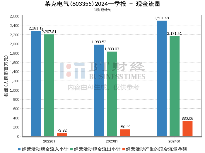 在现金流量方面,莱克电气的经营活动产生的现金流量净额从上年同期的2.08亿元增长至3.3亿元,增幅为58.45%。经营活动现金流入小计为25.01亿元,较上年同期的22.67亿元增长了10.35%。经营活动现金流出小计为21.71亿元,较上年同期的20.58亿元增长了5.49%。现金流量的显著改善主要得益于公司解除冻结资金以及业务收入的增长。