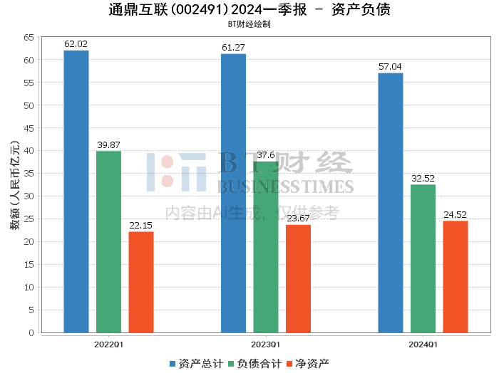 从资产负债数据来看,通鼎互联在2024年一季度末的总资产为57.04亿元,较上年度末的58.88亿元减少了3.13%。这一变化主要反映了公司在资产管理和投资方面的调整。负债合计从上年度末的34.08亿元下降至32.52亿元,降幅为4.60%。资产负债率从57.89%下降至57.01%,显示公司在负债管理方面有所改善。然而,归属于上市公司股东的所有者权益也从24.66亿元减少至24.39亿元,降幅为1.11%。这表明公司在提升资产效率方面仍需努力。