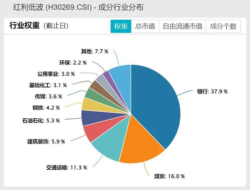 进一步从行业分布来看,选取申万一级行业维度,可以看见中证红利低波动指数重点覆盖银行、煤炭、交通运输、建筑装饰、石油石化等常见的高分红周期赛道。
