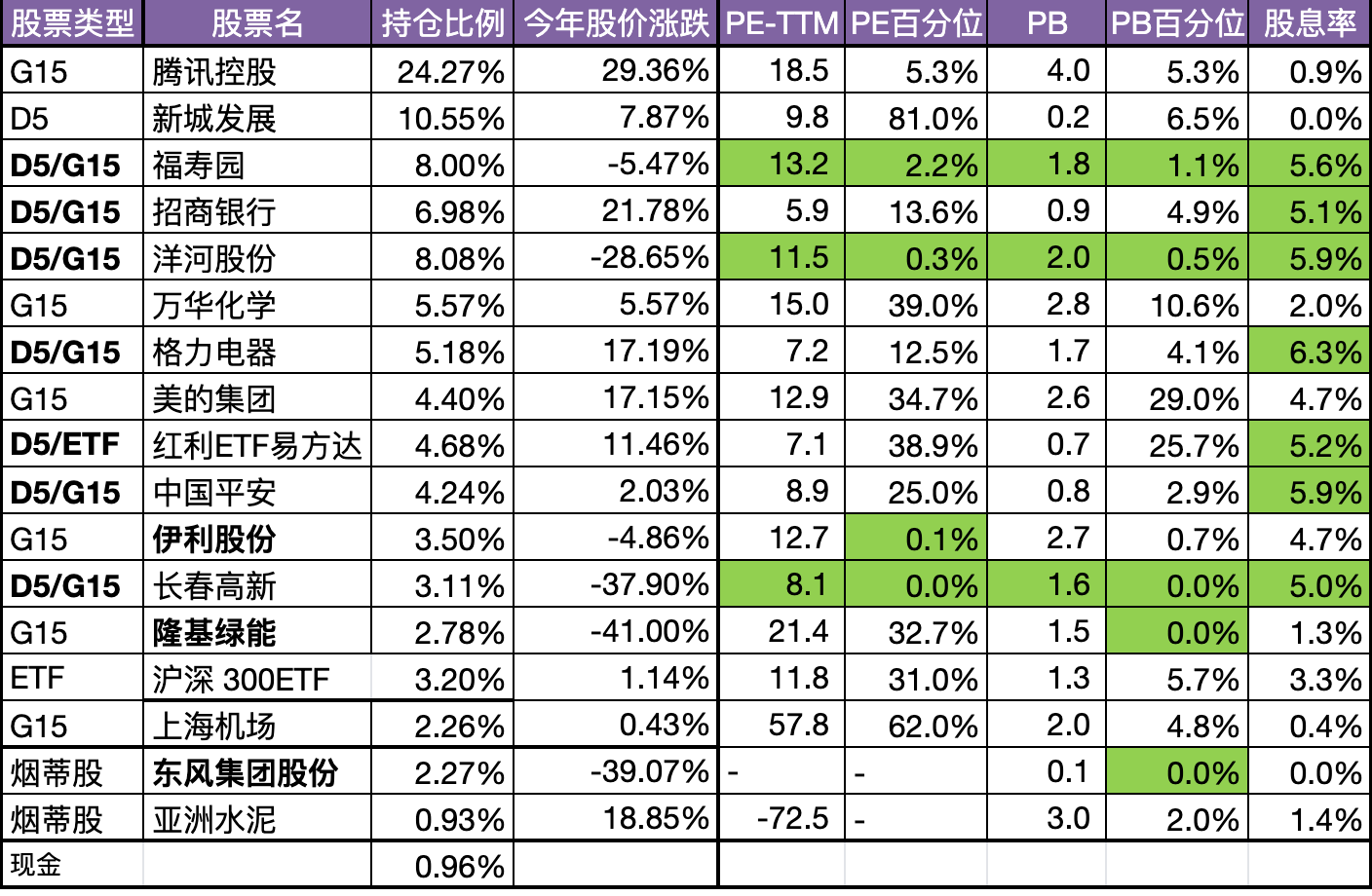 本组合的特点是分散持有多只低估值股票,追求稳健的收入,同时希望控制回撤,缺点是爆发力弱了点,胜在稳定性强。