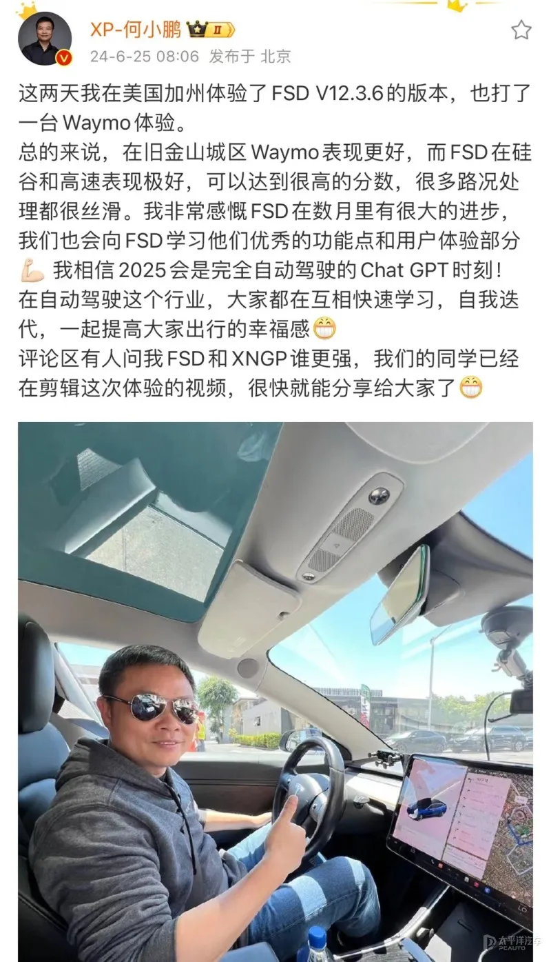 据报道,何小鹏在访美期间体验了特斯拉FSD,并称赞其表现出色,表示会向FSD学习优秀的功能点和用户体验部分。消息人士指出,此次行程可能是为小鹏后续推出纯视觉解决方案铺平道路。