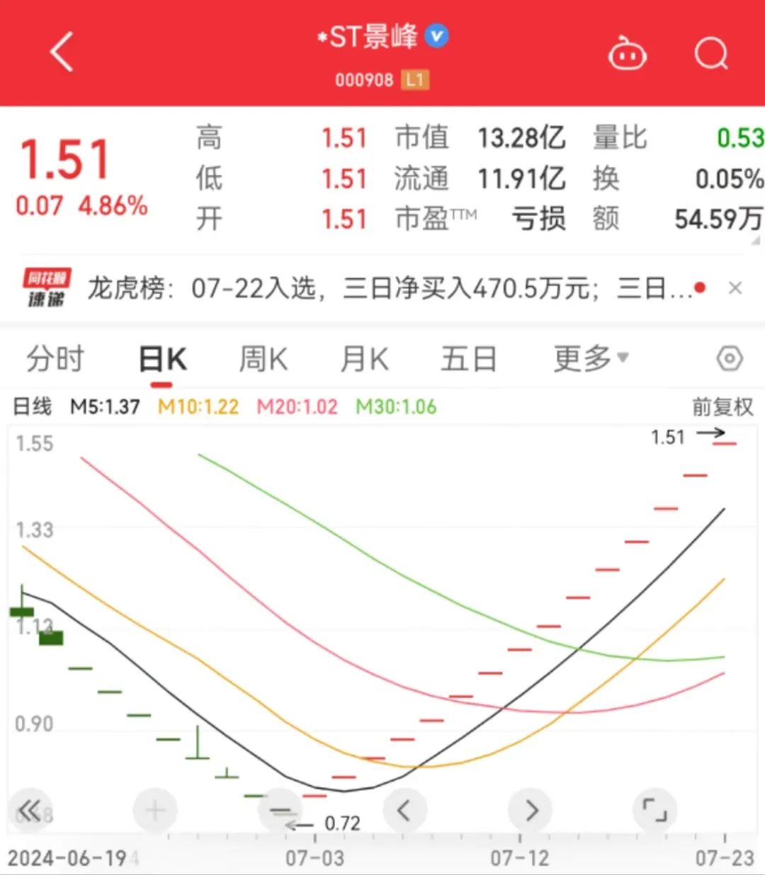 其中,*ST景峰15连板,ST春天9连板,*ST中润5连板。