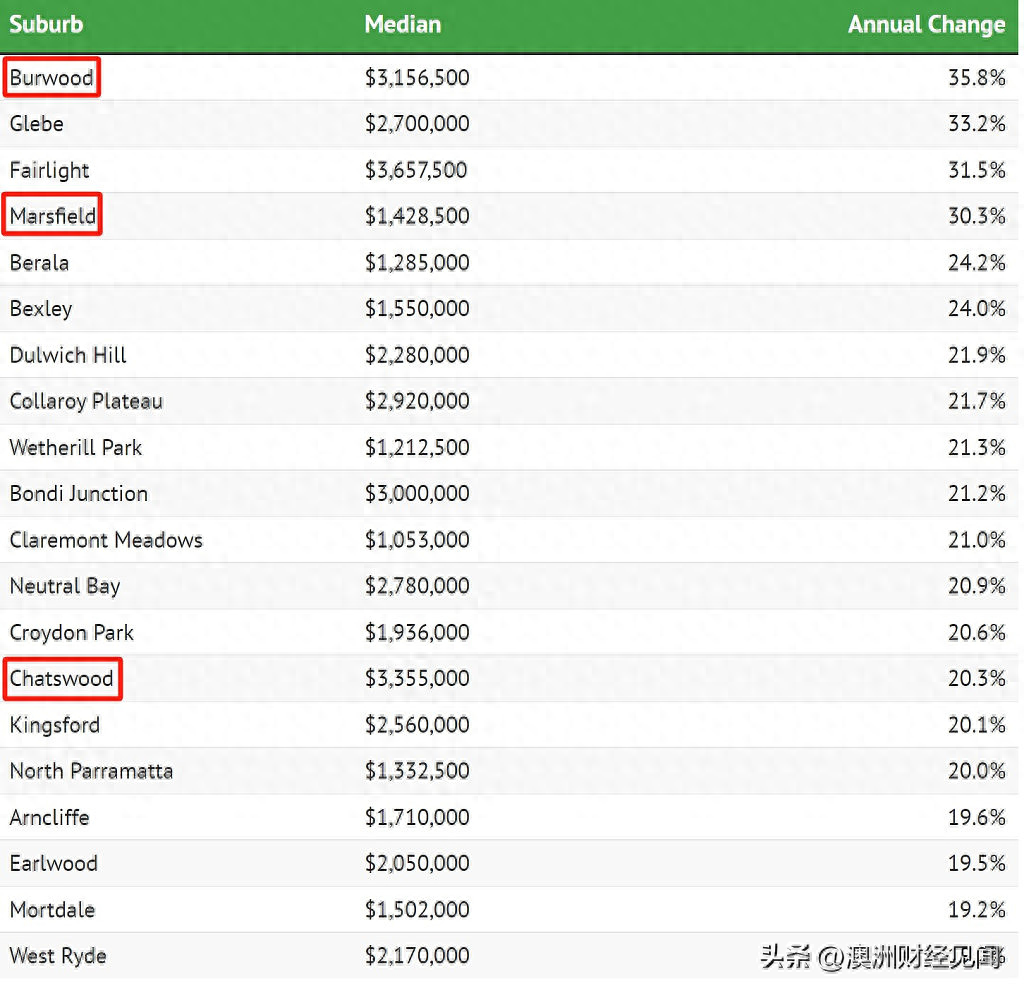《悉尼晨锋报》报道称,Domain本周公布的二季度房价报告显示,悉尼多地房价在 过去一年间出现了大幅上涨,华人区Burwood以35.8%的涨幅排名第一。