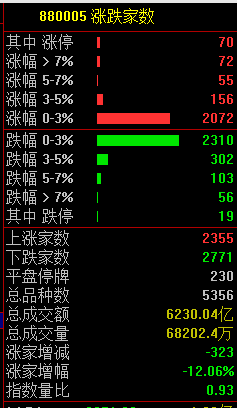 市场两市共2355只个股上涨,70只个股涨停,2771只个股下跌。
