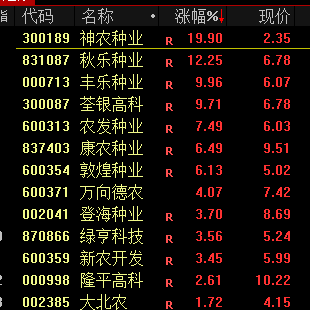 农牧饲渔板块拉升,神农种业“20cm”涨停。