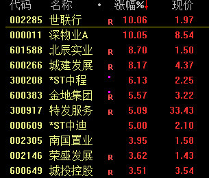 房地产板块震荡拉升,深物业A、世联行双双涨停,特发服务、沙河股份、我爱我家等涨幅靠前。