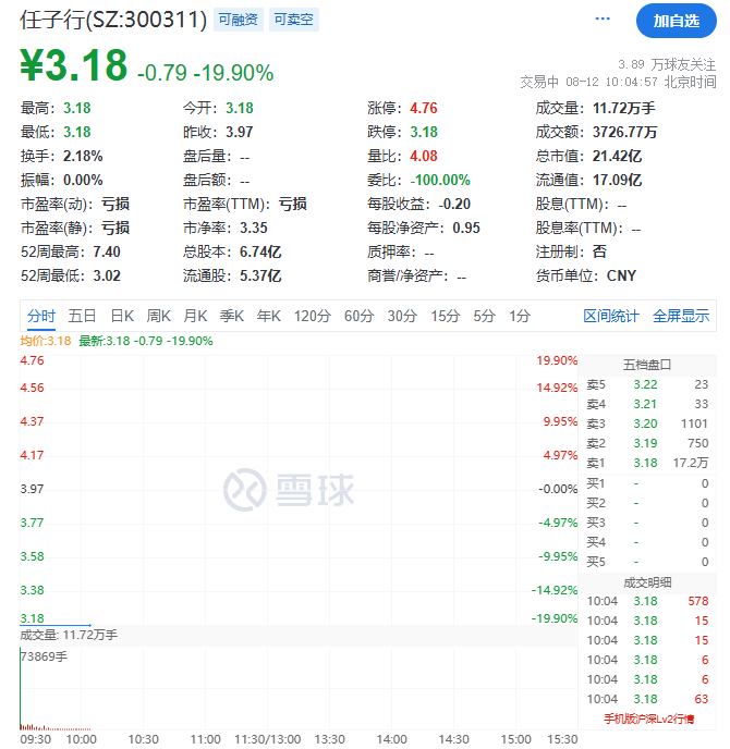 近期,多个社交平台上均有网友发声称自己“又阳了”。中国疾控中心日前发布的2024年7月全国新型冠状病毒感染疫情情况显示,夏季流感等病毒感染占比下降,新型冠状病毒感染人数有所上升,占比升高。此前,世卫组织提示国际社会关注新冠感染异常增多,称巴黎奥运会期间已有至少40名运动员感染新冠病毒和其他呼吸道疾病病原体。 国家传染病医学中心主任、复旦大学附属华山医院感染科主任张文宏教授分析称,从全球范围来看,新冠感染波动都呈现以半年为一周期的交替,并逐渐成为我国阶段性流行的呼吸道疾病。 遭证监会立案调查 任子行20CM跌停 8月12日,任子行在集合竞价阶段即跌停,上午保持一字跌停状态。截至发稿,任子行股价为3.18元/股,跌幅为19.9%。