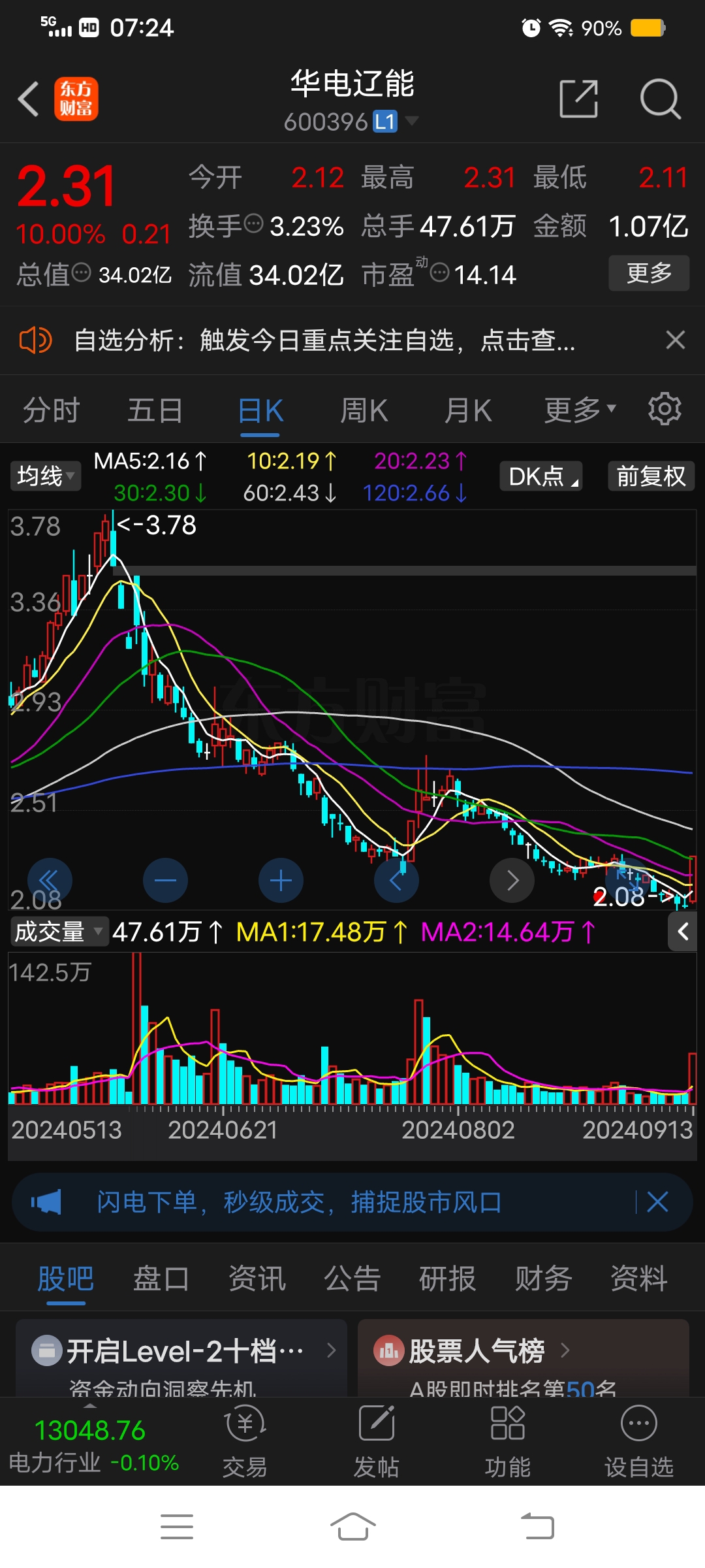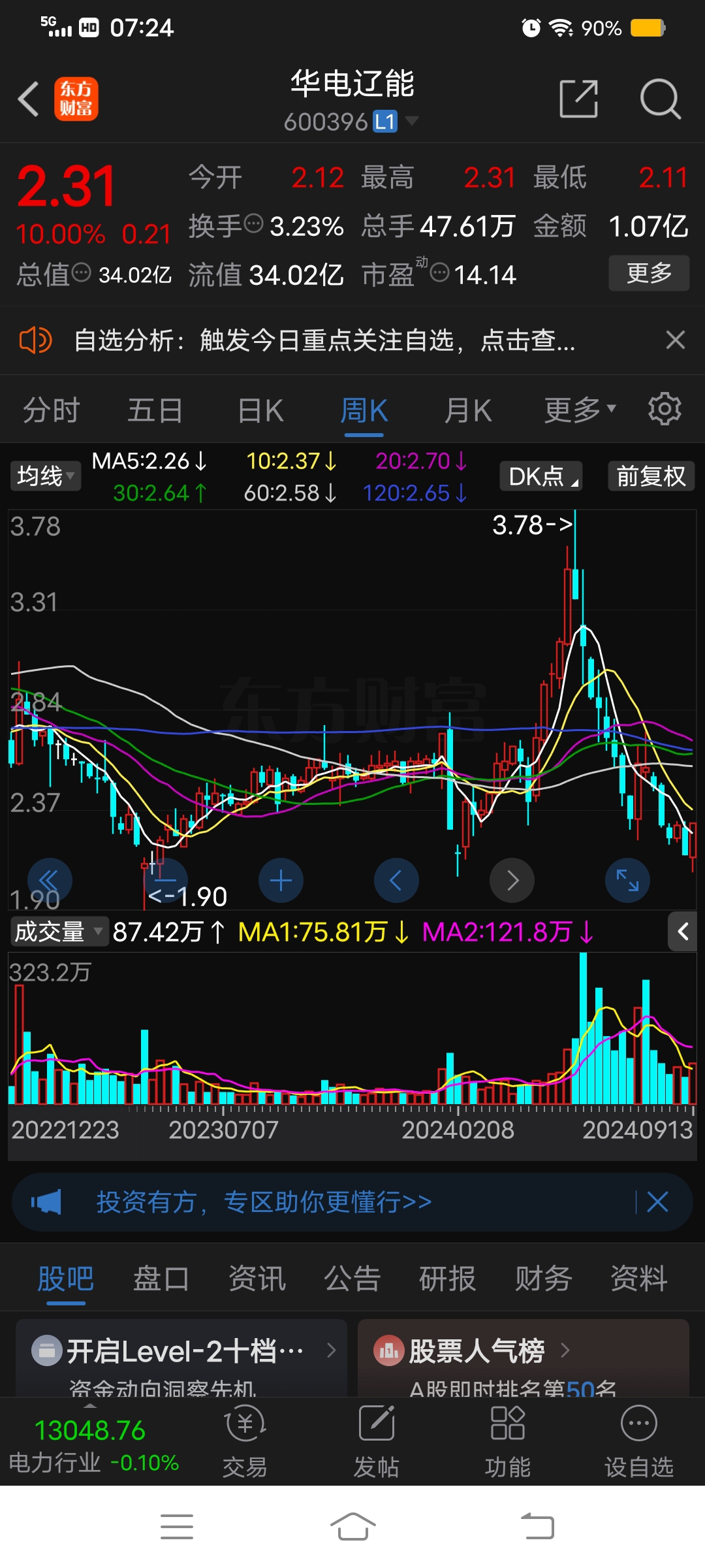 央企电力,业绩好转,摘帽后大跌。应有反攻机会。价值投资最适合。