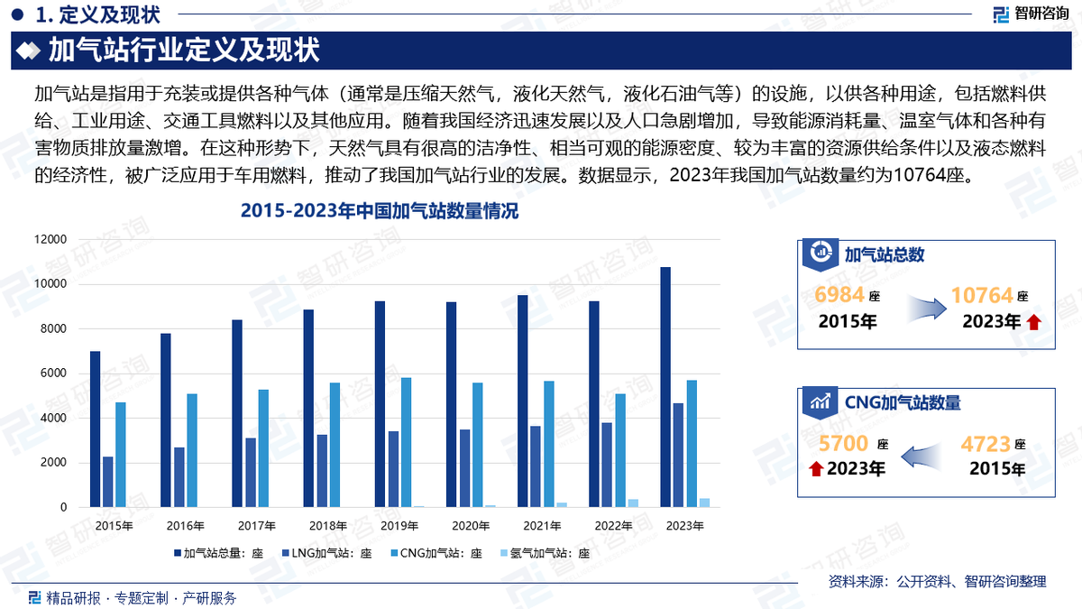 在当下高度信息化的社会背景下,精准的数据分析与深入的行业研究已成为企业战略规划、市场拓展以及投资决策不可或缺的指南针。智研咨询研究团队经过长期的市场调研与数据分析,重磅推出《2024-2030年中国加气站行业市场现状分析及发展前景展望报告》,以期为业界提供一份高质量、专业化的行业分析。