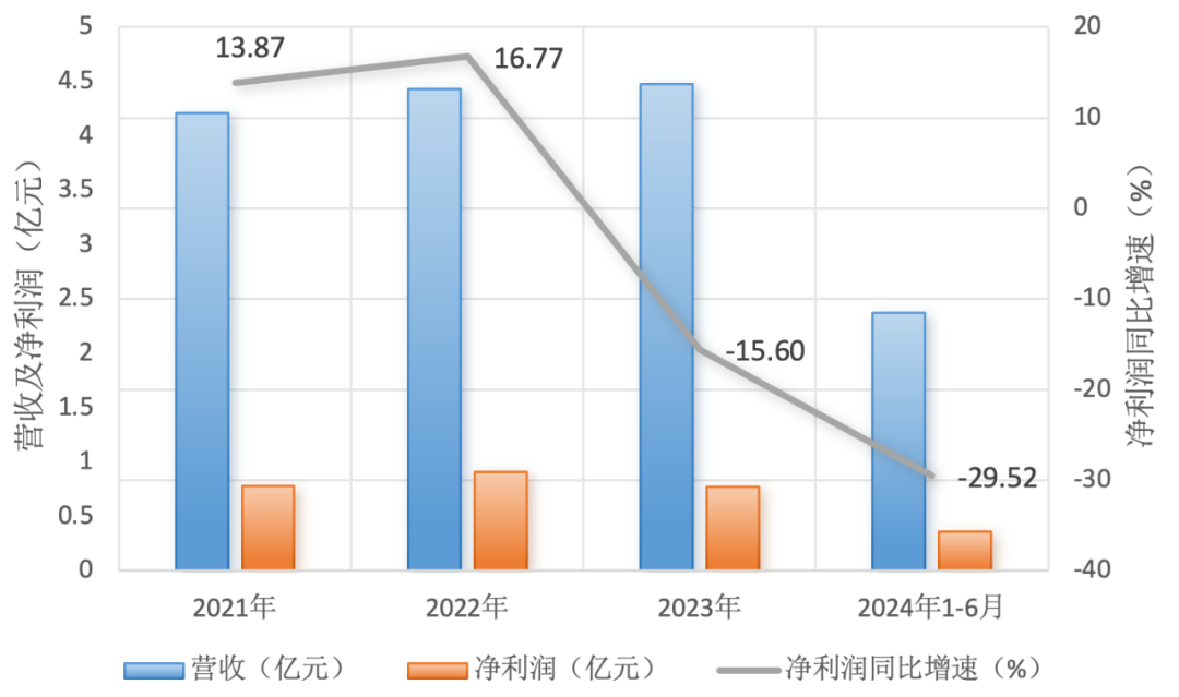 股价承压之下,科源制药业绩也存在下滑压力。数据显示,2021年至2023年,该公司营收分别为4.21亿元、4.43亿元、4.48亿元,同比增速分别为14.67%、5.22%、1.07%;各期净利润分别为7817.25万元、9127.84万元、7703.94万元,同比增速分别为13.87%、16.77%、-15.60%,下降明显。