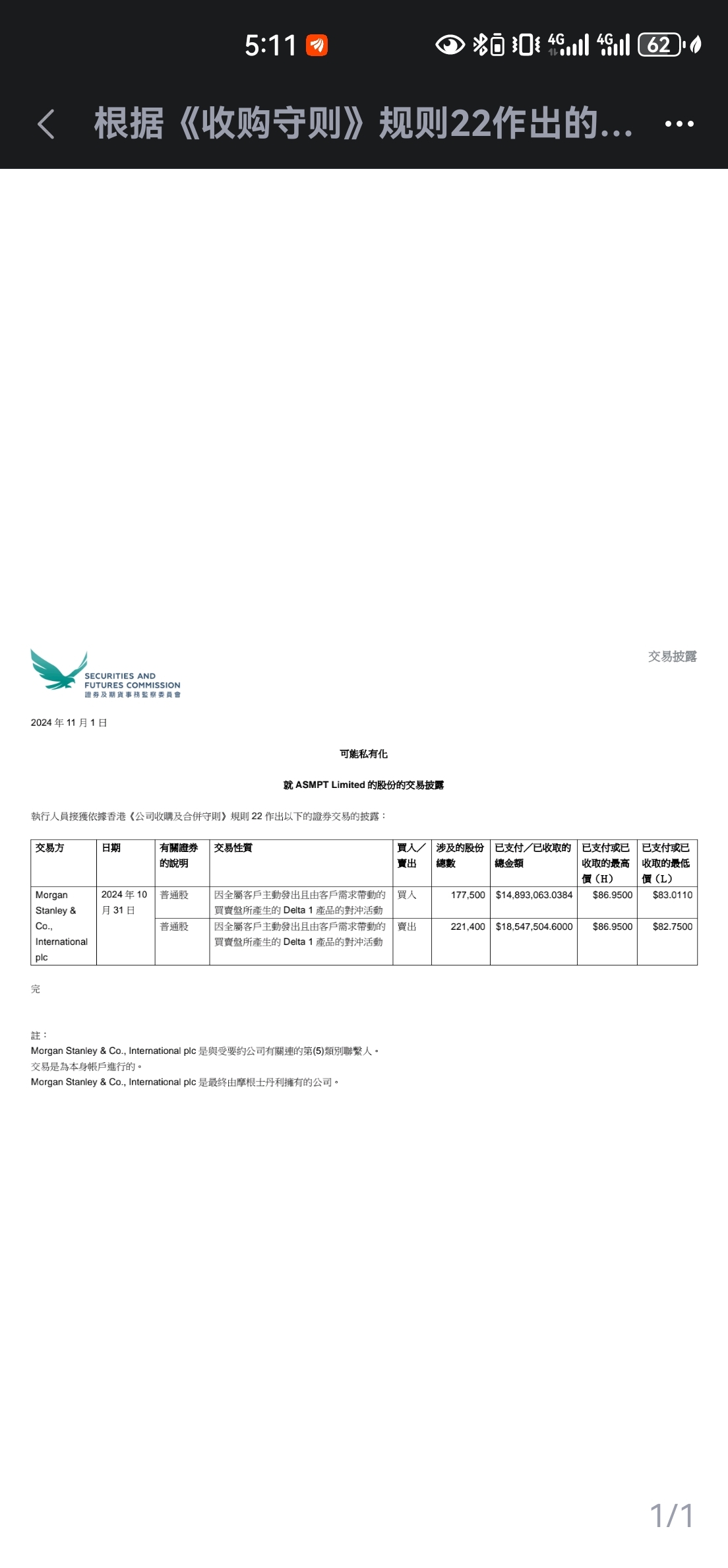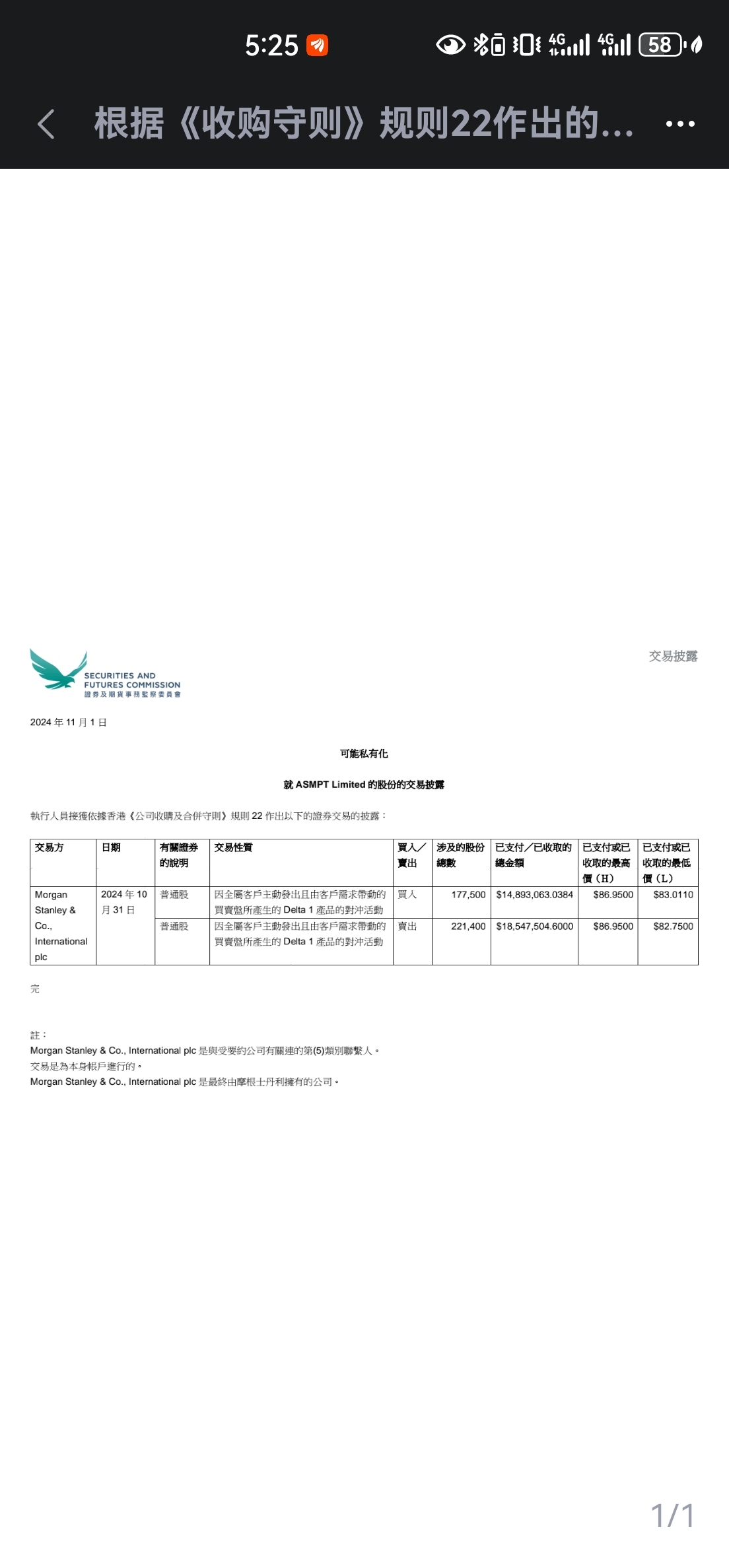 ASMPT(港股代码:00522)发布公告或许已经通过摩根斯坦利开始私有化。