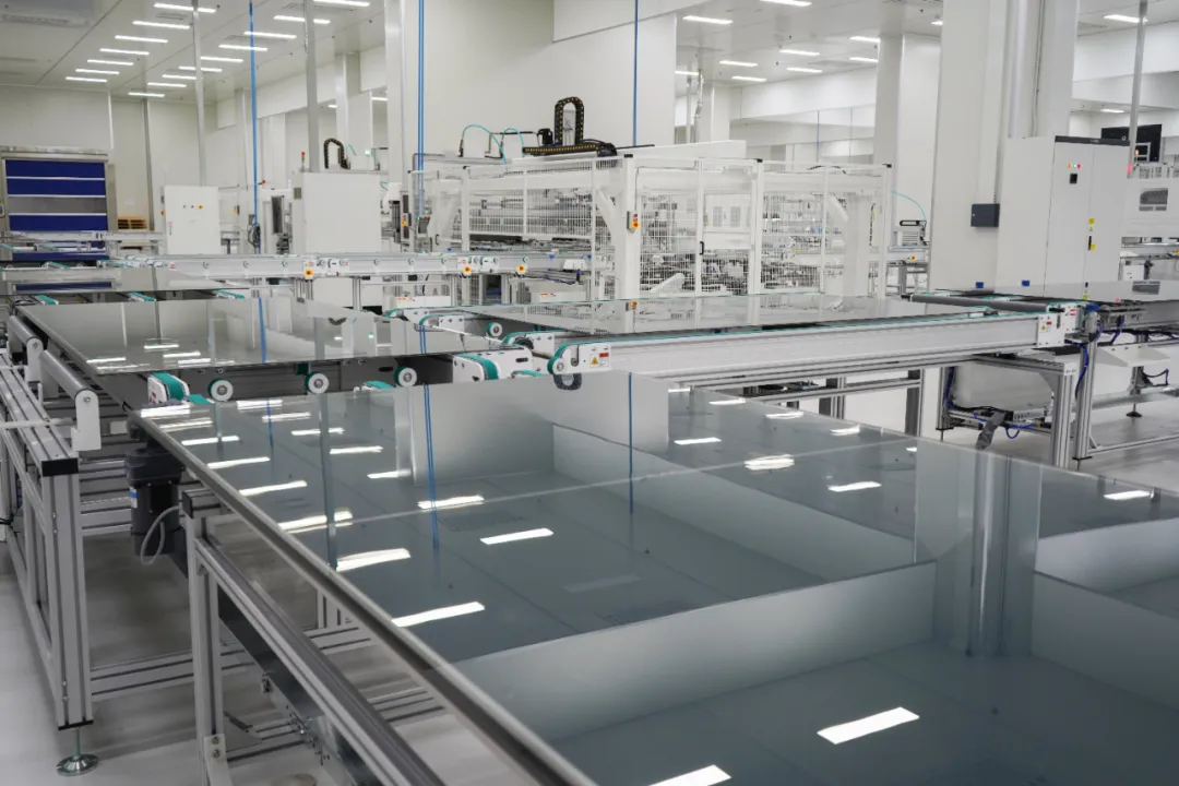 作为全球首家启动GW级钙钛矿组件量产线建设的企业,极电光能凭借领先的技术优势和丰富的生产运营经验,在成功建设和运营150MW中试线的基础上,对这一全球首条GW级钙钛矿组件量产线进行了全面升级设计,使用全球最先进的工艺和设备完成了这条GW级量产线的建设。在全部设备进场后,经过不到一个月的设备联调,全线各工序顺利贯通。在此基础上,导入了中试线工艺之后,该GW产线下线组件效率迅速提升到16.1%,充分验证了公司产线设计、工艺技术、生产运营管理体系的先进性和可靠性。