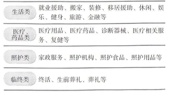 如上所述,银发市场涉及诸多领域,且各领域内容有很大差别。