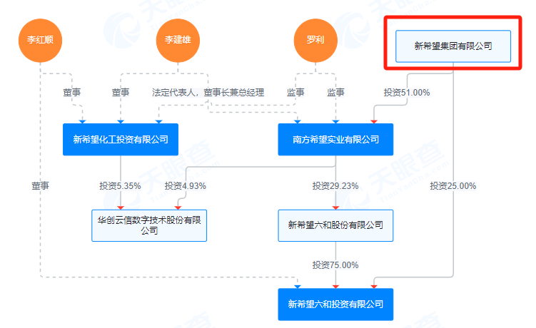 完成上述增持后,新希望化工及其一致行动人合计持有民生银行的股份比例将超过5%。 截至11月18日,南方希望实业有限公司、新希望六和投资有限公司合计持有民生银行的股份比例达4.96%。 天眼查显示,新希望化工、南方希望实业有限公司、新希望六和投资有限公司均由新希望集团掌控。