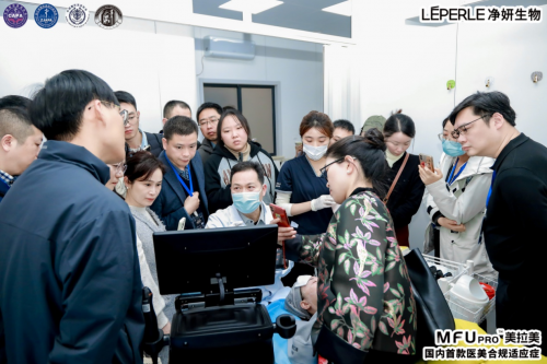 MFUpro美拉美超声刀作为本次学习班的超声设备成为现场焦点。在朱金土教授的专业实操指导下,实操学员们进行了全面的实操训练。不仅加深了对微聚焦超声操作技巧的理解,还掌握了其在临床应用中的关键点,进一步提升了他们在未来临床实践中运用微聚焦超声抗衰技术的能力与水平。