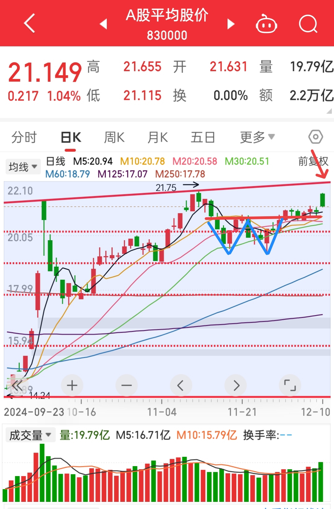 我们看平均股价今天高开的位置,是刚好位于11月12日高点附近,它的性质是给前期的山顶的这些资金解放。